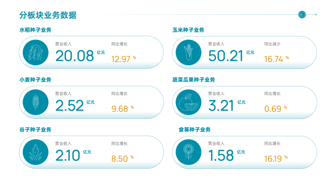 專精特新板塊方面,產(chǎn)業(yè)通過持續(xù)品種升級,實(shí)現(xiàn)穩(wěn)健增長,營收約6.9億元,同比增長6%,凈利潤2.8億元,同比增長3%。其中,蔬菜瓜果種子實(shí)現(xiàn)營業(yè)收入3.21億元,較上年同期增加0.69%;谷子種子實(shí)現(xiàn)營業(yè)收入2.10億元,較上年同期增長8.50%;食葵種子食葵種子實(shí)現(xiàn)營業(yè)收入1.58億元,較上年同期增長16.19%。